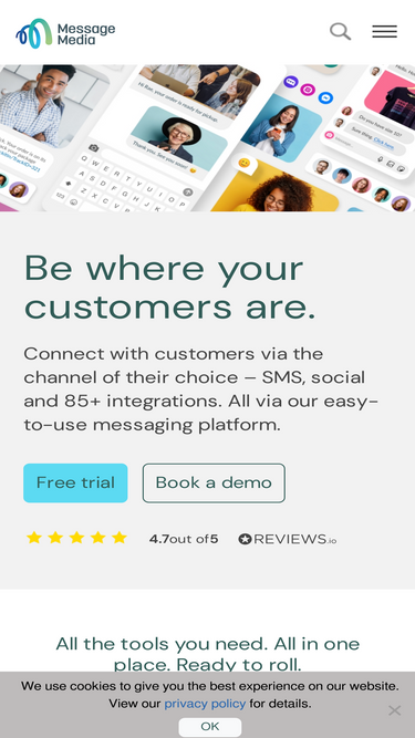 79%Communicate with customers via the channel of their choice – SMS, social and integrations. All via our messaging platform for businesses.