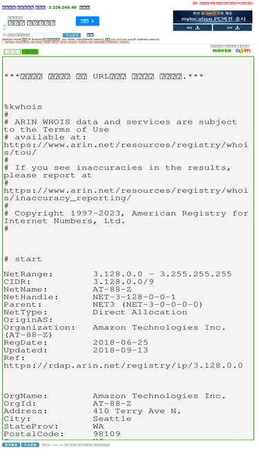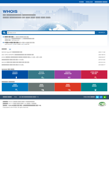 95%한국인터넷진흥원 인터넷주소자원 검색(후이즈검색) 서비스 입니다.