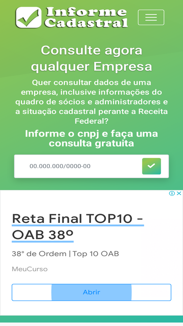 63%Quer consultar dados de uma empresa, inclusive informações do quadro de sócios e administradores e a situação cadastral perante a Receita Federal? Informe o cnpj e faça uma consulta gratuita.