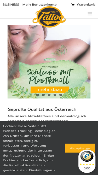 81%Individuelle Klebetattoos Organics Farb-Tattoos Schwarze-Tattoos Gold-Tattoos Metallic-Tattoos Service B2B-Bereich Kostenlose Muster Shop Geprüfte Qualität aus Österreich Alle unsere Abziehtattoos sind dermatologisch getestet & gemäß der europäischen Kosmetikverordnung geprüft.