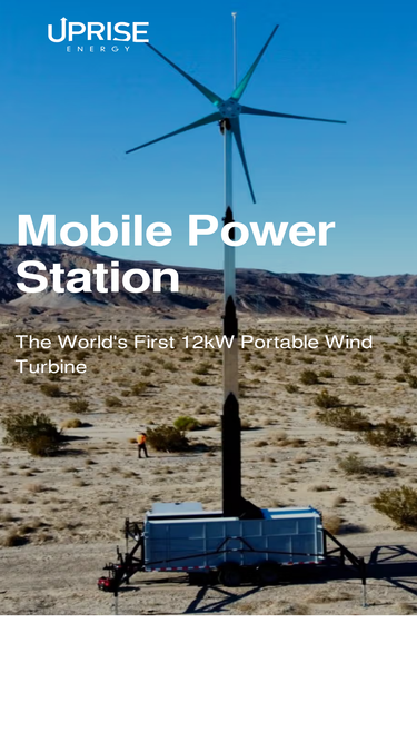 Discover the portability of Uprise Energy’s Mobile Power Stations. Our 12kW portable wind turbines are easy to transport and set up, providing reliable off-grid power for remote areas, military use, disaster relief, and more. Learn how our turbines offer unmatched flexibility and efficiency.