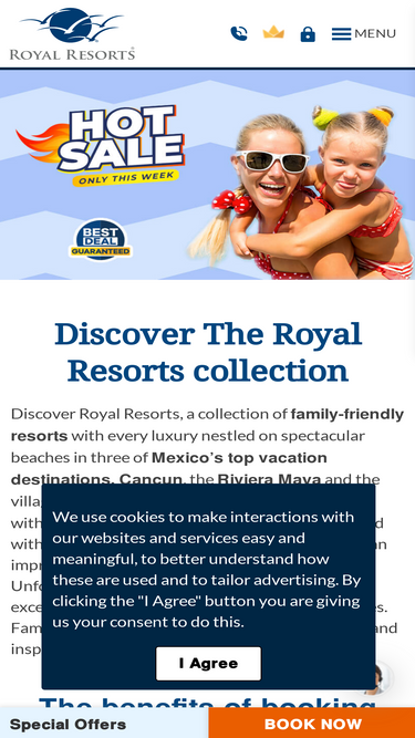 75%Discover Royal Resorts, a collection of six family-friendly resorts with every luxury nestled on spectacular beaches in three of Mexico’s top vacation destinations, Cancun, the Riviera Maya and the village of Puerto Morelos.