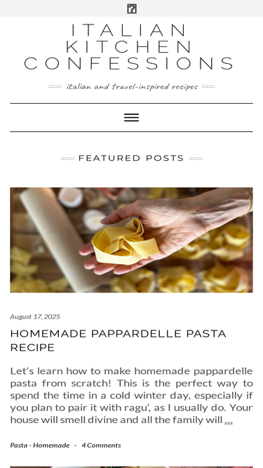 83%Privacy Policy Last Updated: October 2025 An Italian in my Kitchen (“Website,” “we,” “us,” or “our”) is committed to protecting your privacy. This Privacy Policy explains what personal information we collect, how we use and share it, and your rights under applicable laws. This statement applies solely to information collected through this Website. 1. INFORMATION...