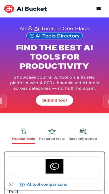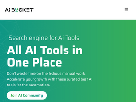 89%The AI Bucket stands as the preeminent directory for Best Ai tools, boasting an extensive collection of over 2000 AI tools across more than 20+ categories.