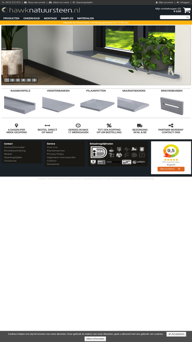 92%hawknatuursteen.nl heeft een zeer grote collectie natuurstenen bouwelementen voor binnenshuis, buitenshuis en in uw tuin. wij leveren o.a. raamdorpels, deurdorpels, vensterbanken, muurafdekkers en spekbanden. bezoek onze showroom voor goed advies en scherpe prijzen. uiteraard ook voor maatwerk! voor een enkel dorpeltje of alle natuursteen voor uw huis, bij hawknatuursteen.nl bent u aan het juiste adres.