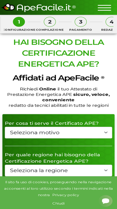 80%Non sai se il tuo immobile ha già un certificato APE valido? Richiedi una verifica gratuita. Un esperto controlla il catasto energetico regionale per te in 5 minuti.