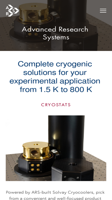 89%ARS manufactures cryogenic equipment for low temperature applications and experiments, including nanoscience, quantum optics, optical spectroscopy, and neutron scattering. ARS specializes in Helium-Free Cryostats, Flow Cryostats, and Probe Stations.