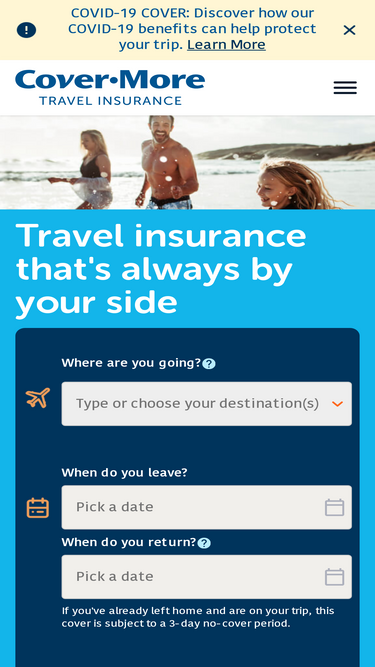 85%planning a holiday? get a free cover-more travel insurance quote now. trusted by 15 million global travellers. 35+ years’ experience. backed by zurich.