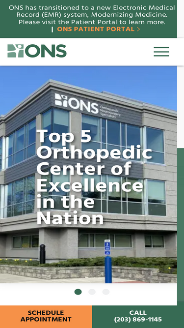 92%At ONS, our fellowship-trained orthopedic and neurosurgical specialists are ranked among the best in the country. Castle Connolly has also named ONS a Top 5 Orthopedic Center of Excellence in the nation, recognizing our outstanding quality and expertise. Our physicians live in your neighborhood, send their kids to local schools, and care for both community and elite athletes. Let ONS physicians provide the care to restore what matters most. That’s the ONS difference. See the premiere Orthopedic and Neurosurgery practice in Fairfield and Westchester counties.