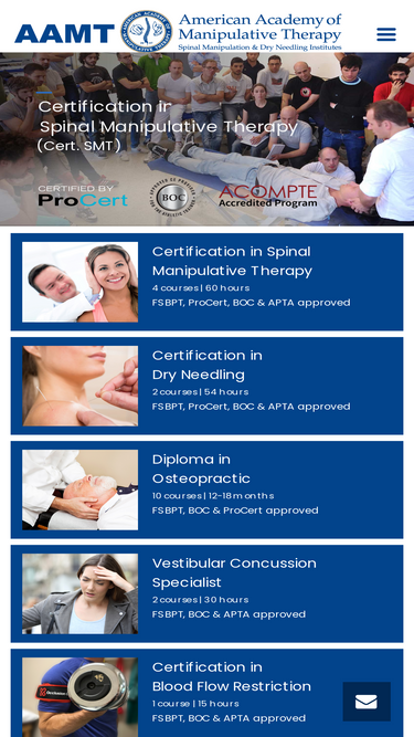 75%AAMT is the worldwide leader in spinal manipulation and dry needling education. We have taught more PTs, MDs and ATCs the art and science of spinal manipulation and dry needling than any other institute. Learn from the original source and the experts.
