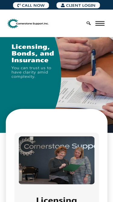 100%Cornerstone is a group of highly-talented experts in the licensing, bonds, and insurance spaces. Come see how our team is the right team to free you to get back to work on your business.