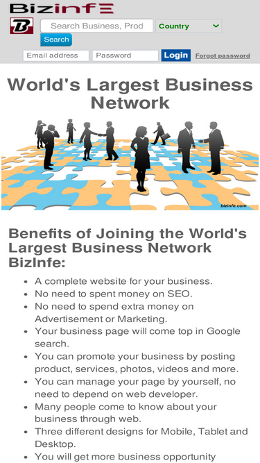 95%bizinfe is the world's largest business network, business information. bizinfe is the best way to connect with business owners and business across the world. bizinfe brings your business to the next level. join free now!