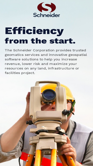 100%The Schneider Corporation provides trusted geomatics services and innovative geospatial software solutions to help you increase revenue, lower risk and maximize your resources on any land, infrastructure or facilities project.