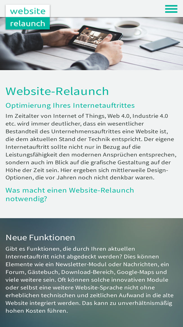 100%Ist Ihr Internet-Auftritt nicht mehr zeitgemäß? Wir nehmen eine gezielte Website-Optimierung oder bei Bedarf einen kompletten Website-Relaunch vor.