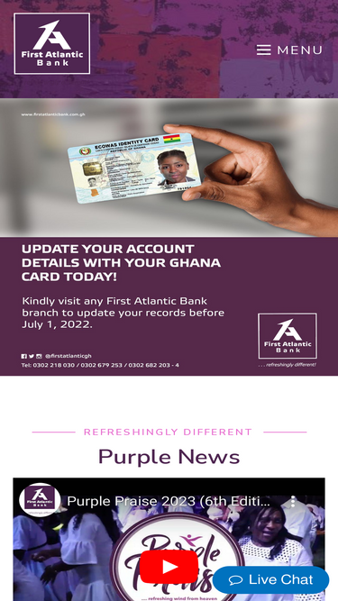 81%First Atlantic Bank PLC offers refreshingly different personal, corporate, and digital banking solutions in Ghana. Explore our comprehensive range of banking products and services.