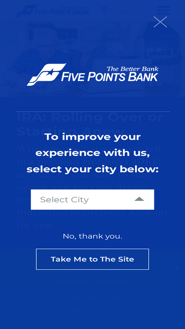 86%no matter if you’re opening a business, buying a home or saving for your future, you can count on five points bank to help you accomplish your unique goals.