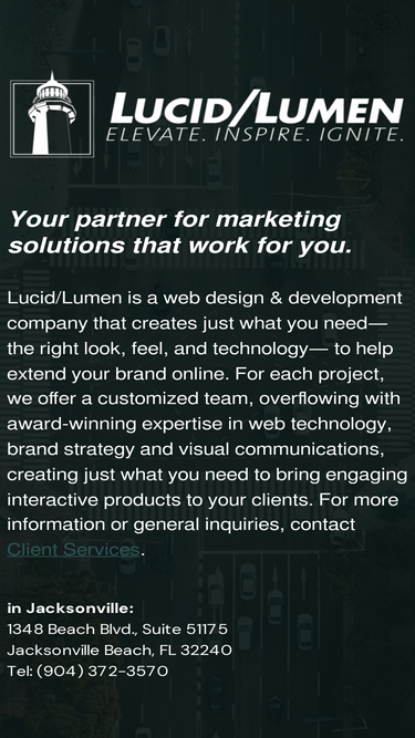 100%your partner for web solutions that work for you. lucid/lumen is a web design and development company that creates just what you need— the right look, feel, and technology— to help extend your brand online. for each project, we