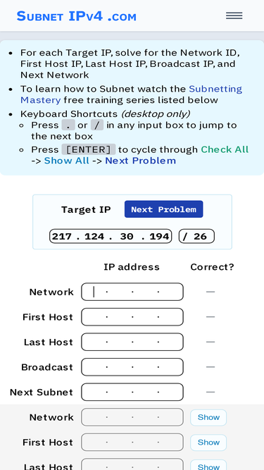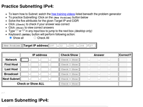 73%Practice IPv4 Subnetting with a problem generator. Still learning? Great! We have the BEST Subnetting instructional videos on the planet -- all free!