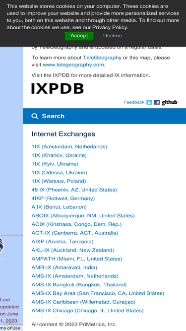 96%TeleGeography’s free interactive Internet Exchange Map depicts over 300 active Internet exchanges and more than 500 buildings in which those exchanges reside.