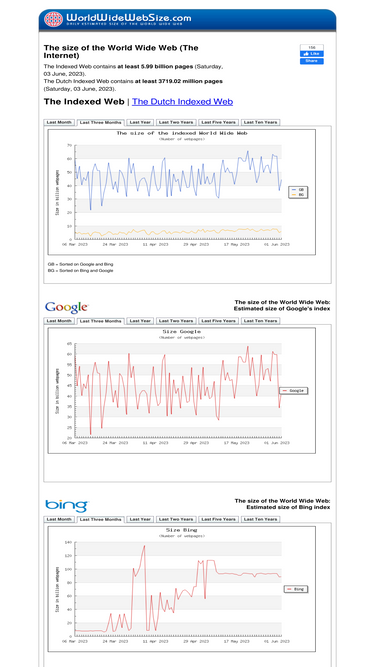 100%the size of the world wide web (the internet) is estimated here every day. the indexed web contains at least 3.55 billion pages. last update tuesday, 17 september, 2024