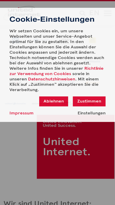 92%die united internet ag ist mit seinen marken 1&1, gmx, web.de, mail.com, ionos, arsys, fasthosts, internetx, united-domains, sedo und united internet media ein führender europäischer internet-spezialist.