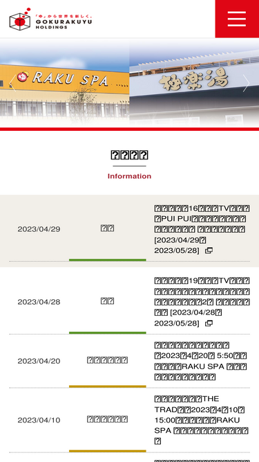 83%店舗数日本一のお風呂屋・極楽湯のトップページです