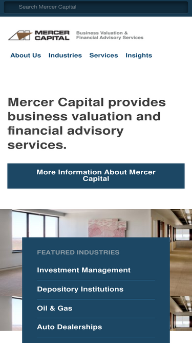 100%For over four decades, Mercer Capital has provided independent expertise in complex valuation and advisory services. We serve sophisticated clients across the country with the insight and analysis that drive critical business decisions.