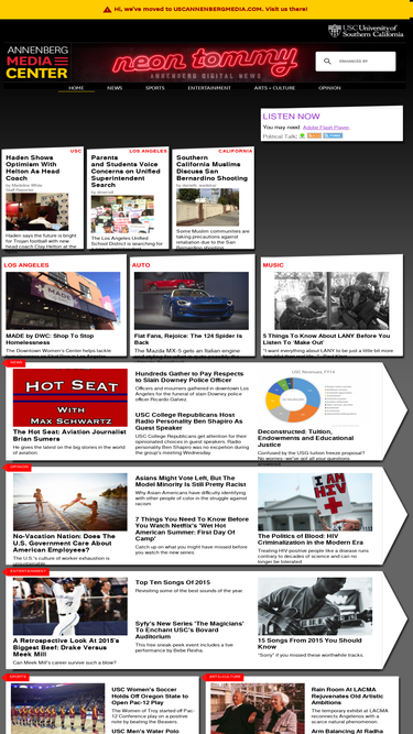 neon tommy is a los angeles-based news source sponsored by the annenberg school for communication and journalism covering breaking news, los angeles and california politics, culture, arts, science and sports.