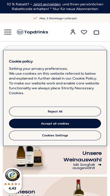 68%Dein Getränke Onlineshop aus Österreich | Spirituosen von A bis Z kaufen | Whisky | Rum | Gin | Cognac | Edelbrände | Likör | Wein, Schaumwein und mehr.