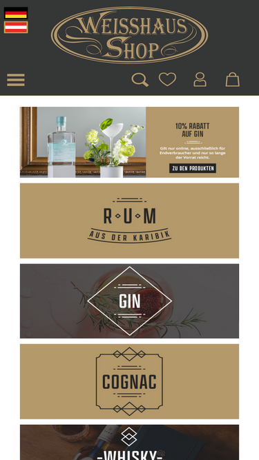 77%Whisky, Rum, Gin, Cognac, Vodka, Tequila, uvm. - im Weisshaus Shop dreht sich alles um den hochprozentigen Genuss ✓ über 5.000 Spirituosen aus aller Welt