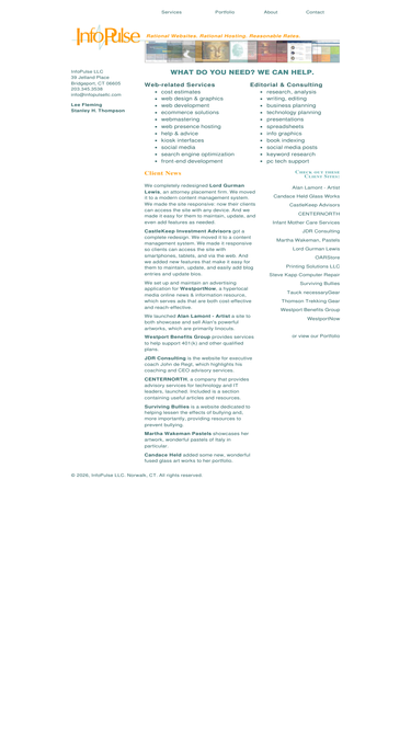 100%infopulse designs and builds rational websites for businesses, professionals, start-ups, & individuals at reasonable rates. we provide business consulting services with an emphasis on serving the needs of small businesses, home businesses, professionals, start-ups, and entrepreneurs.