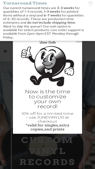 76%custom cut vinyl records from the heart of london. your fully personalised record, sleeve and centre labels - produced in just seven days from £39.99 free uk shipping | £3.95 europe | £10 global