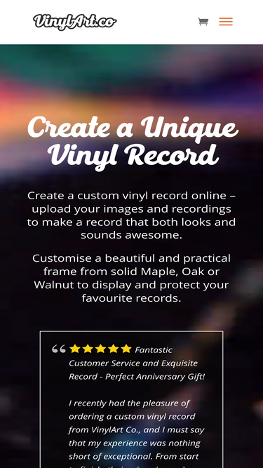 74%Upload your own photographs, customise how you want it to look, then upload any recordings you want us to cut to your vinyl. Our products last a lifetime.