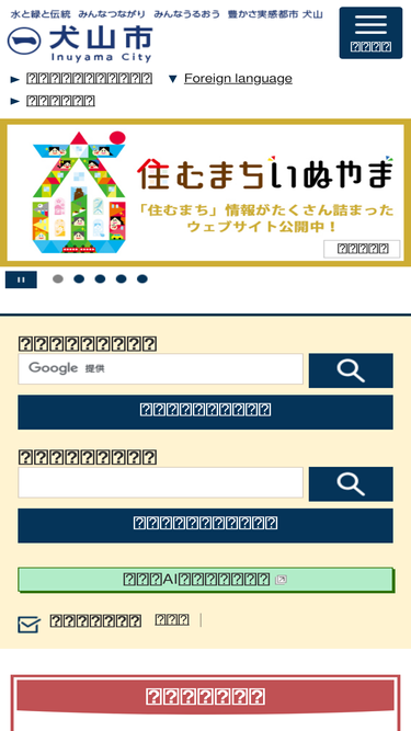 100%こちらは「犬山市公式サイト」です。市政・市議会情報と分野別行政サービス、講座・イベント情報などを掲載しています。