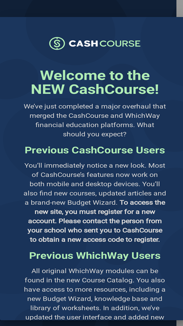 82%cashcourse® is a free, online noncommercial financial literacy resource for colleges and universities, created by the nonprofit national endowment for financial education®. the program provides customizable, interactive personal finance tools used at more than 750 colleges and universities across the country.