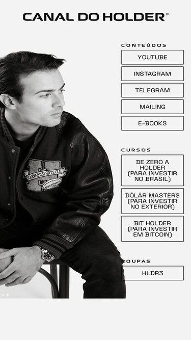 85%Conteúdos YouTube Instagram Telegram Mailing E-Books Cursos De Zero a Holder (para investir no brasil) Dólar Masters (para investir no exterior) Bit Holder(para investir em bitcoin) Roupas HLDR3