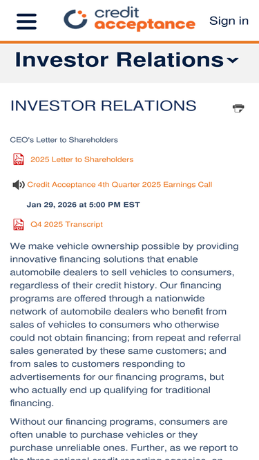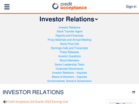 61%The Investor Relations website contains information about Credit Acceptance Corporation's business for stockholders, potential investors, and financial analysts.