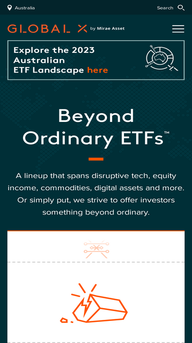 97%Discover Global X ETFs Australia’s diverse portfolio of ETFs - from core equity, thematic and income strategies to commodities and international exposure. Browse funds by category and investment objective to find the right fit for your portfolio.