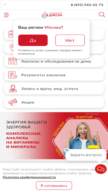 86%анализы в москве, подмосковье, в городах россии