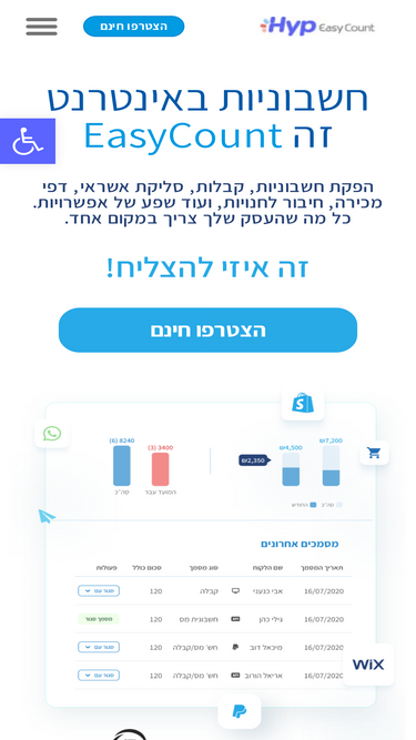 88%איזיקאונט עוזרת לכם עם הנהלת חשבונות באינטרנט. בין אם להפקת חשבוניות ממוחשבות, קבלות או הצעות מחיר, אנחנו כאן בשביל לעזור לכם. הרשמו ל- 30 ימי נסיון חינם!