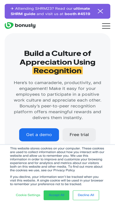 81%Bonusly has a plan that fits any team looking to motivate teams, empower managers, and drive performance. Learn more about our transparent pricing and get started.