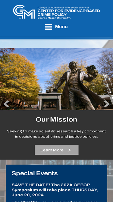 86%Outreach, Symposia and Briefings Outreach Home Calendar of Events Translational Criminology 2019 Symposium 100K for 10 One-Pagers 2018 Symposium 2010 Stockholm Prize in Criminology Awarded to David Weisburd David Weisburd, Distinguished Professor in the Department of Criminology, Law and Society at George Mason University and Executive Director of the Center for Evidence-Based Crime Policy, was…