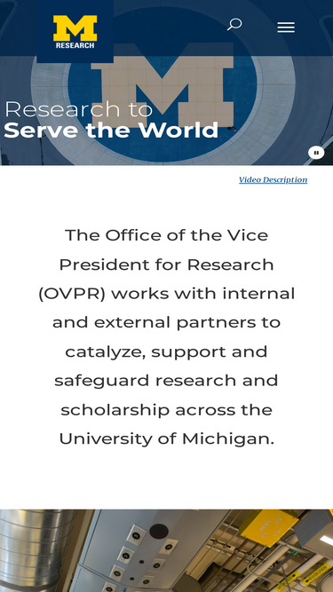 Research to Serve the World. The Office of the VP for Research & Innovation catalyzes, supports and safeguards U-M research and scholarship.