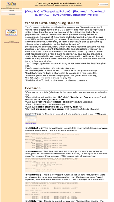 71%cvschangelogbuilder official web site - build friendly, accurate text or graphical changelog for cvs projects.