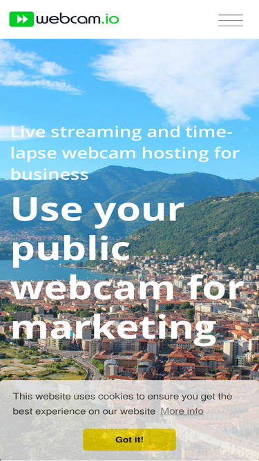 80%use your public webcam for marketing. increase traffic and encourage visitors by embedding a live stream and a time-lapse view of your location or project.