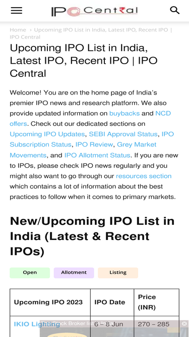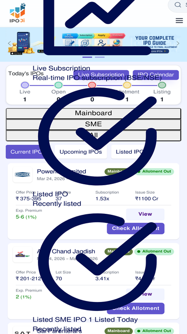 97%Get real-time updates on live and upcoming IPOs, GMP, subscription status & more. Track, compare & apply for IPOs easily with IPO Premium.