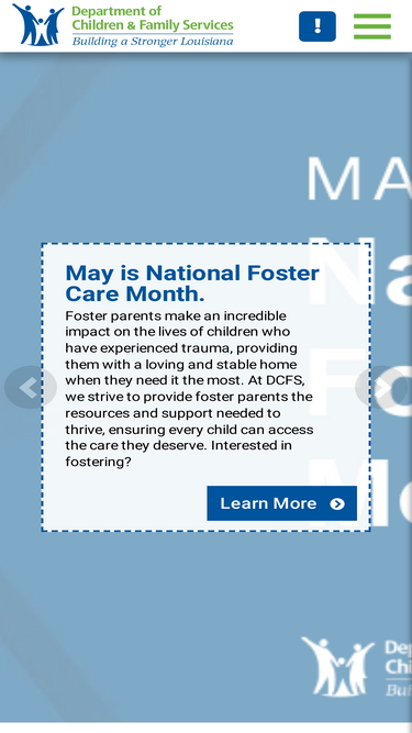 74%The Department of Children & Family Services works to meet the needs of Louisiana's most vulnerable citizens. The Child Welfare division works to protect children against abuse and neglect, find permanent homes for Louisiana's foster children and to educate the public on Safe Sleep and Louisiana's Safe Haven Law..