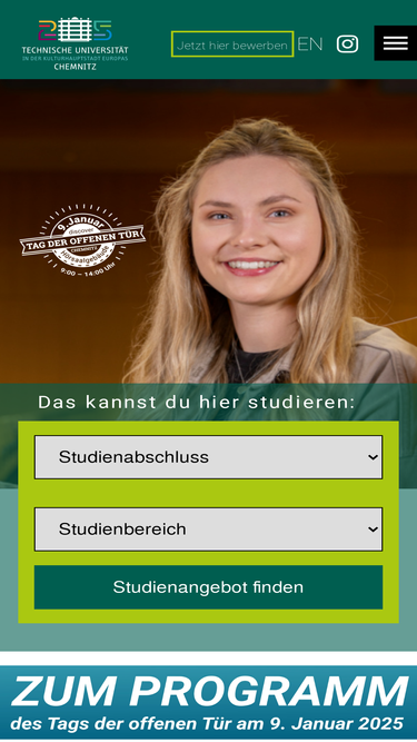 91%du weißt nicht was du studieren sollst? die tu chemnitz gibt dir alle infos rund um die angebotenen studiengänge, zugangsvoraussetzungen und bewerbungsunterlagen für dein studium.
