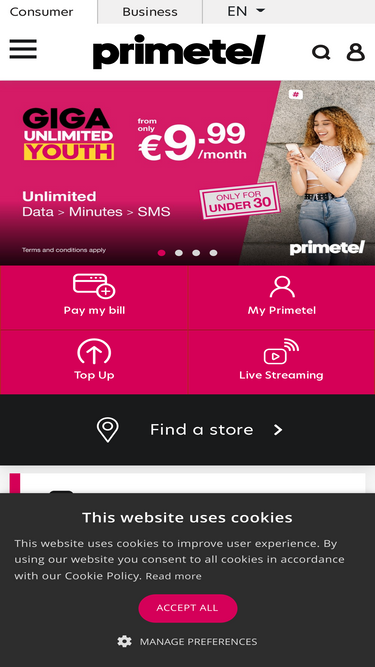 78%Η PrimeTel είναι Κυπριακή εταιρεία τηλεπικοινωνιών που προσφέρει και αναπτύσσει υπηρεσίες Φωνής Δεδομένων και Εικόνας. Η εταιρεία λειτουργεί προηγμένο και αυτόνομο τηλεπικοινωνιακό δίκτυο ευρυζωνικής πρόσβασης σε Παγκύπρια βάση.