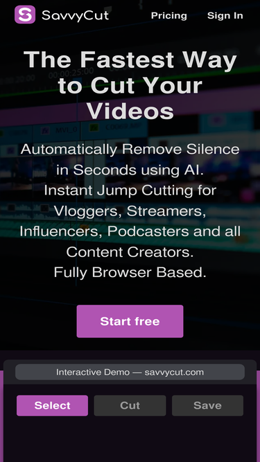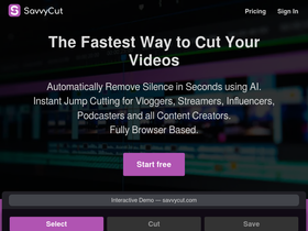 86%SavvyCut automates video editing by removing silences in seconds to save your time. SavvyCuts AI based Smart Cut algorithm uses speech detection to cut videos without any loss of quality.